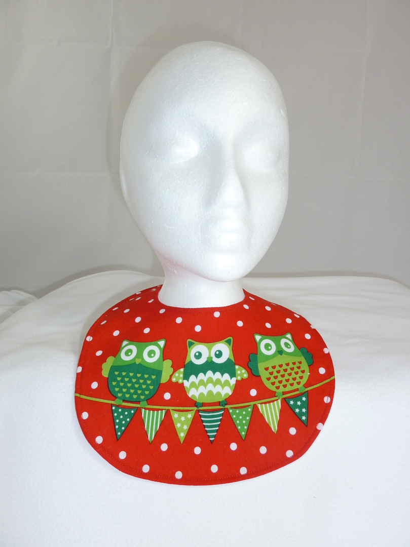 CHRISTMAS - OWLS ON BUNTING LARGE ROUND BIB £8.00