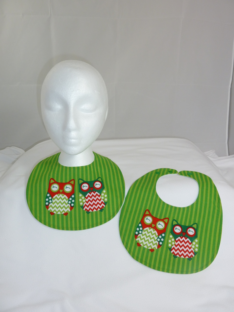 CHRISTMAS - TWO OWLS ON STRIPE BACKGROUND LARGE ROUND BIB £8.00