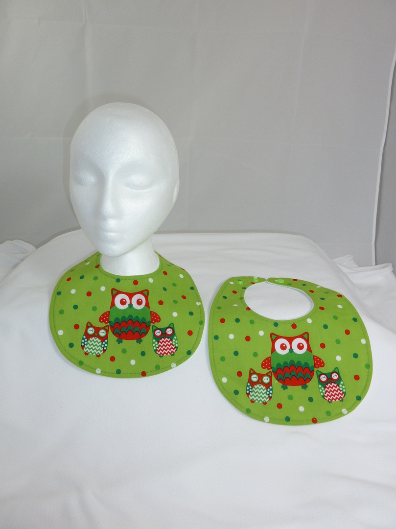 CHRISTMAS - OWLS ON BRANCH LARGE ROUND BIB £8.00