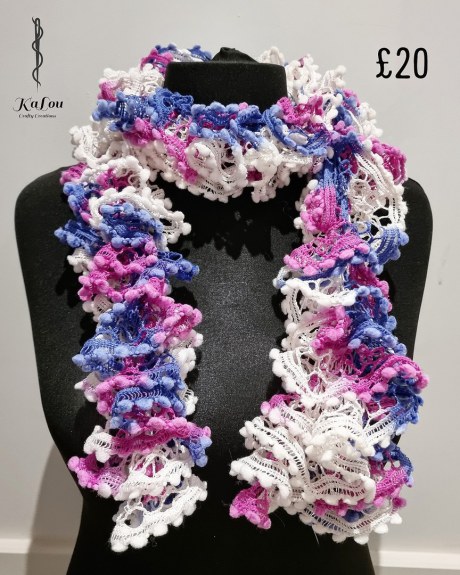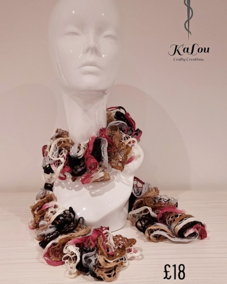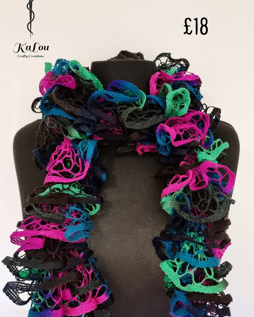 We have a wide range of unusual knitted scarves and shawls available to purchase.